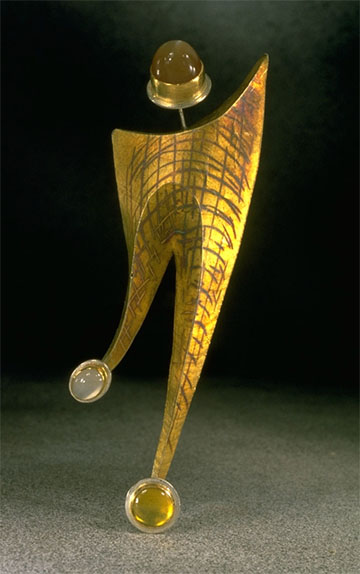 "Dancing pin", moonstones, zircon, 18k gold doublee. Scored