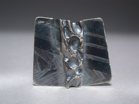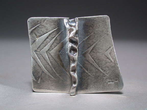 sterling silver (Chased T-fold), paper die monoprint, 2005, 48x42mm,